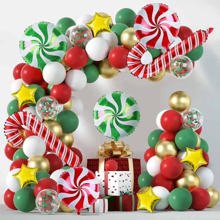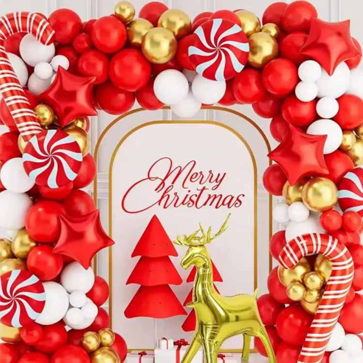 A karácsonyi léggömbív készlet ünnepi dekorációs léggömbök, amelyeket stylistjaink illesztettek hozzá. Általában különböző anyagú, típusú, színű és méretű léggömböket tartalmaznak. A hozzáillő elemek lehetnek alufólia léggömbök, latex léggömbök vagy BOBO léggömbök. És a hozzáillő kiegészítők, mint a léggömb láncok, ragasztópontok, kampók stb. Beltéri vagy kültéri dekorációhoz használható, hogy gyorsan megteremtse az erős karácsonyi hangulatot. Alkalmas családi összejövetelekre, üzleti eseményekre vagy ünnepi rendezvényekre.
