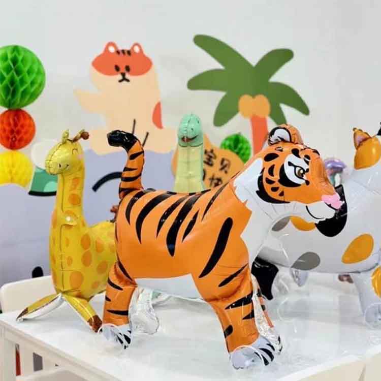 Gyerek születésnapi parti: A születésnapi partiján különféle rajzfilm -állati fóliabólus, például oroszlánok, tigrisek, zsiráfok, medvék stb.