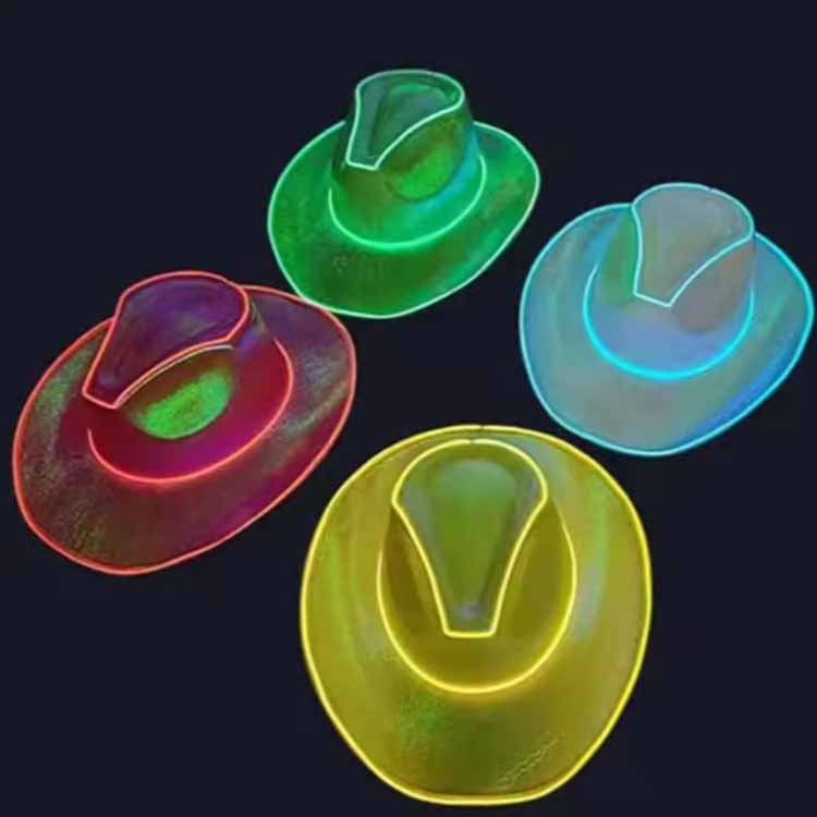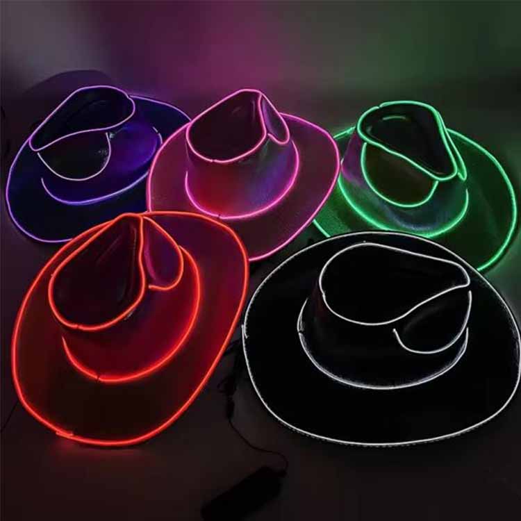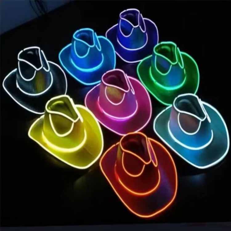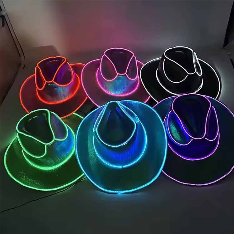 Ez a LED fluoreszkáló színes sapka könnyen használható, és mindössze 5 perc alatt felszerelhető. Egyszerűen helyezzen be két AA elemet, kapcsolja be a kapcsolót, és élvezze a világító cowboy-kalap szórakozását.