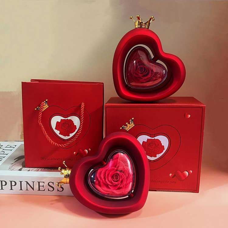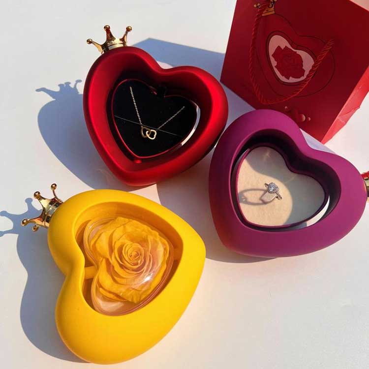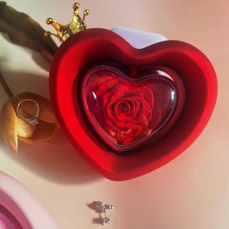 A Heart Shape Rose Jewelry Box A kategóriájú tartósított virágokat használ, amelyek színe és állaga megkülönböztethetetlen a friss virágoktól.