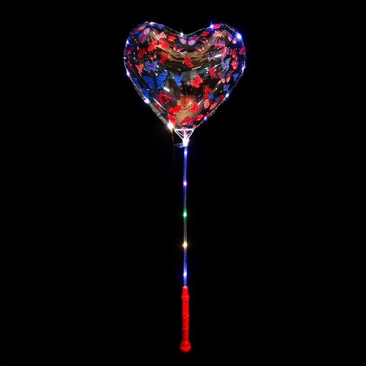 Gyakran kombináljuk a szív alakú nyomtatott Bobo léggömböket fogantyúkkal vagy LED-es világítódobozokkal. Kiválaszthatja a kívánt fény színét.