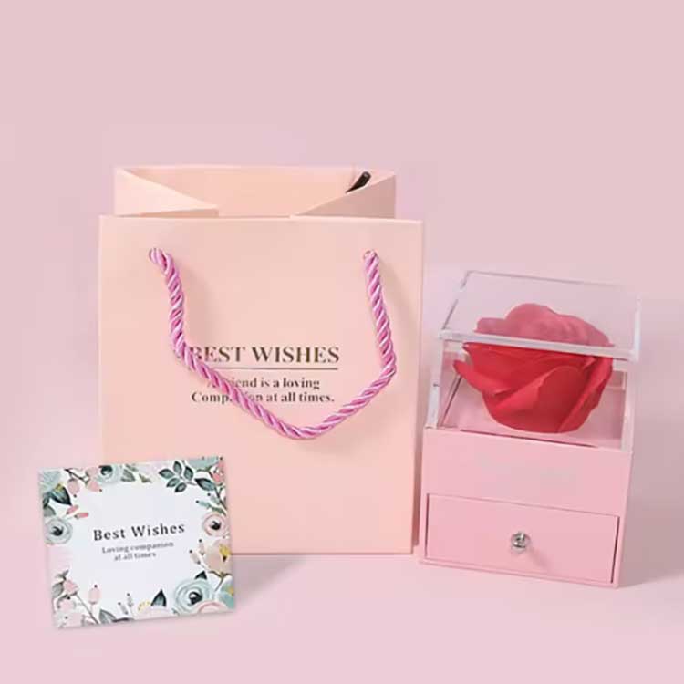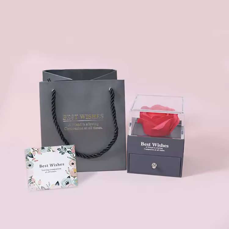 Az Immortal Flower Gift Box népszerű termék. Tartozékai kiváló minőségű anyagokból készülnek.Minden díszdoboz készlet egy fényes rózsát és gyönyörű ékszereket tartalmaz. Amikor megkapja őket, közvetlenül használhatja őket anélkül, hogy saját maga telepítené őket. Teljes mértékben ki tudják fejezni érzéseidet barátaid vagy rokonaid felé, így a szertartás tele lesz romantikával és meglepetéssel.