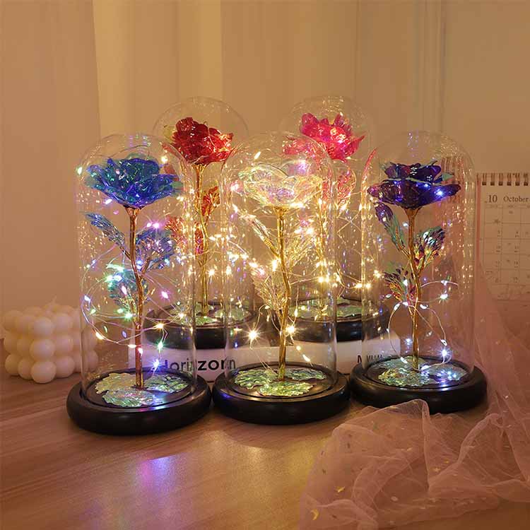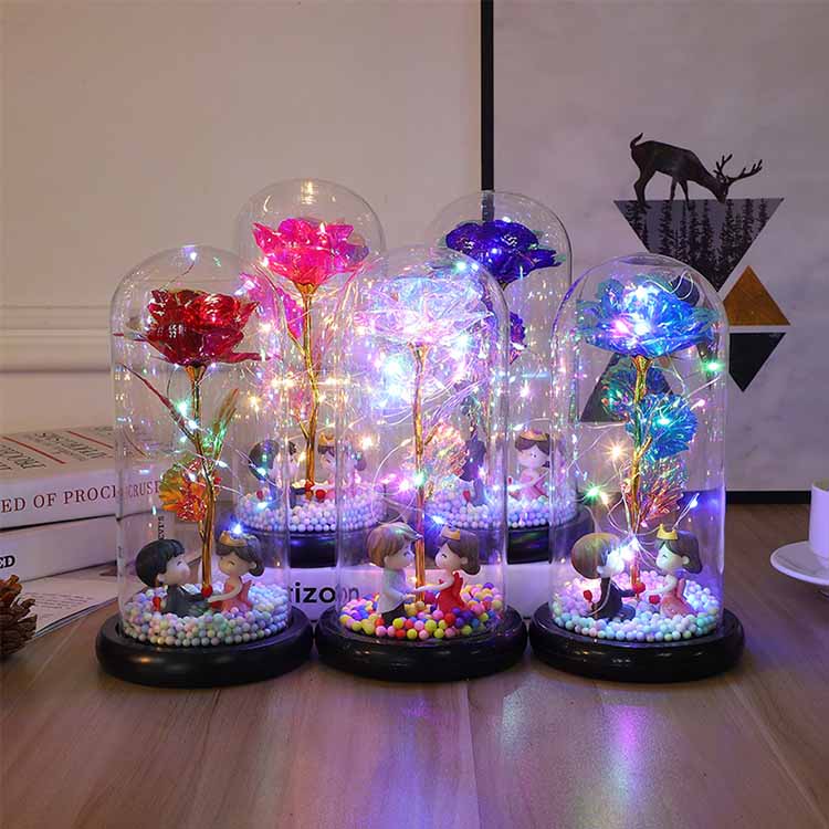 A LED 24K üveg rózsa a védőburkolatban, sok babánk és játékunk van. A vásárlók kiválaszthatják kedvenc babáikat és a nekik tetsző virágok színét. Testreszabhatjuk őket az Ön igényei szerint.