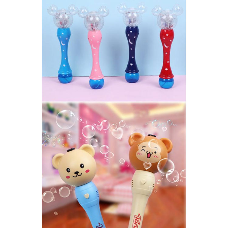 Ez a világító elektromos buborékos gép LED lámpákkal van felszerelve, és levehető, kör alakú aljával rendelkezik a buborékoldat megtartásához. Ha a kapcsolót bekapcsolja, a fény rávilágít a buborékokra, így azok színesek. A buborékgépek gyermekek szórakoztatására, valamint parti dekorációra és színpadi előadásokra használhatók.