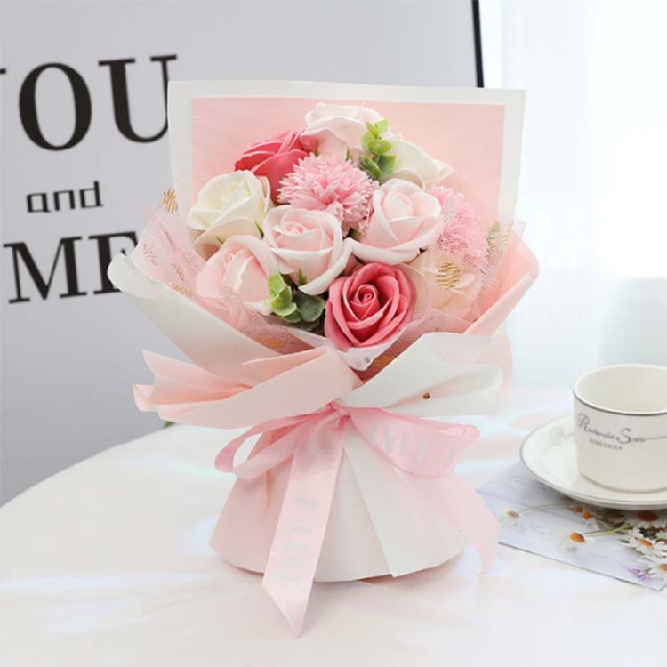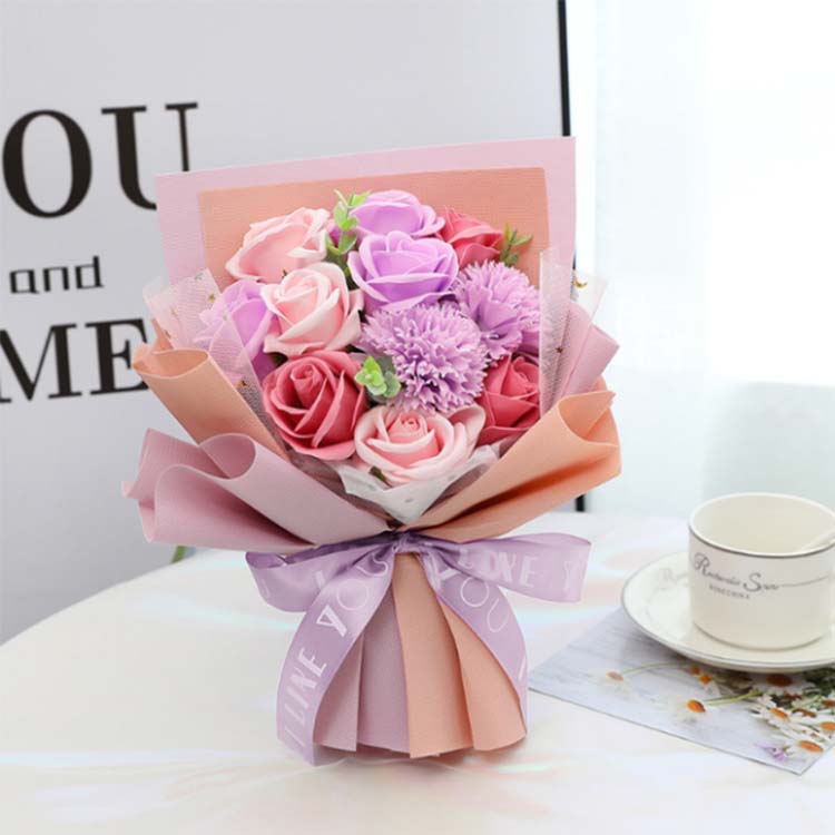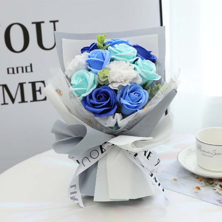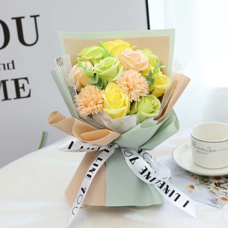 A szappanvirágcsokor 11 színes virágot tartalmaz, és szalaggal díszítik. Alkalmas alkalmak: gyónás, hálaadáse, ajándékozás, szezonális ünnepségek, üzleti kommunikáció, kitüntetés és megemlékezés, céges juttatások stb.