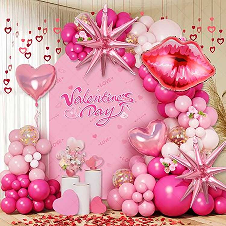 Szigorú minőség-ellenőrzés: Minden ballon szigorú gyártásellenőrzésen esik át, hogy biztosítva legyen az egyenletes vastagság (megakadályozva a szétrepedést), az egyenletes felfújási teljesítmény és a sima, fényes felület. Szigorúan választjuk ki az anyagokat a Valentin-napi ballonfüzér készleteinkhez, és tartós és környezetbarát anyagokat választunk, hogy a léggömbkoszorúk hosszú ideig felfújva maradjanak.